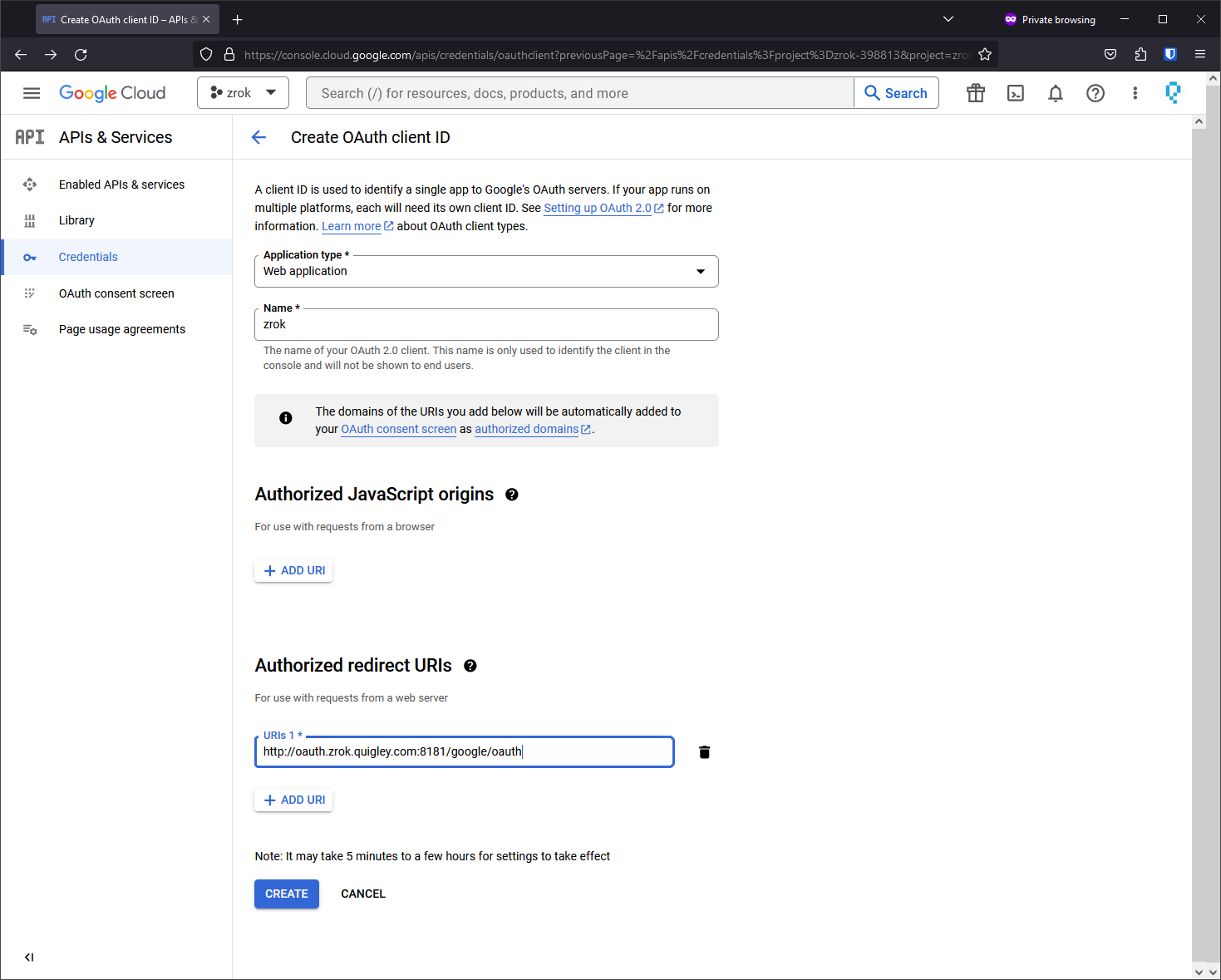 Create OAuth 2.0 client ID