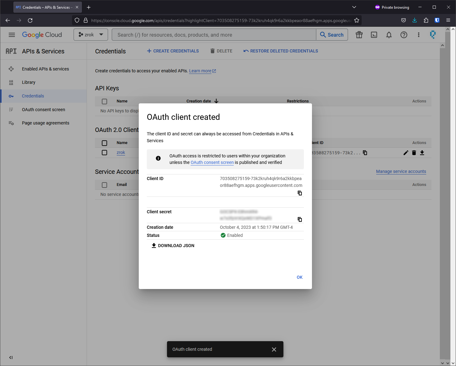 Select OAuth client ID: